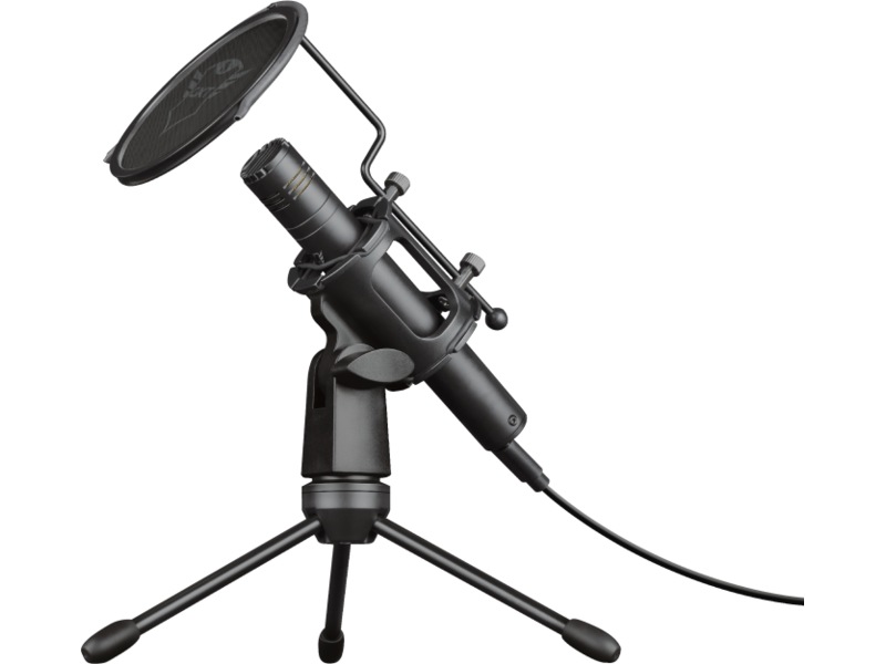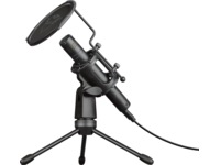 En mikrofon som är enkel att använda samt stativ och popfilter