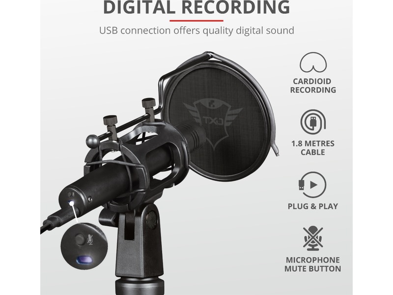 Kardioidmönstret för inspelningen minskar bakgrundsbruset, så bara det viktiga spelas in: din röst. Medföljande popfilter gör att irriterande popljud hör till det förflutna, och tack vare Velica-inspelningarna med hög precision är den här mikrofonen lämplig för alla som vill streama, göra podcasts eller spela in voice-overs. Även inspelning av musik är inget problem för den här mångsidiga mikrofonen.