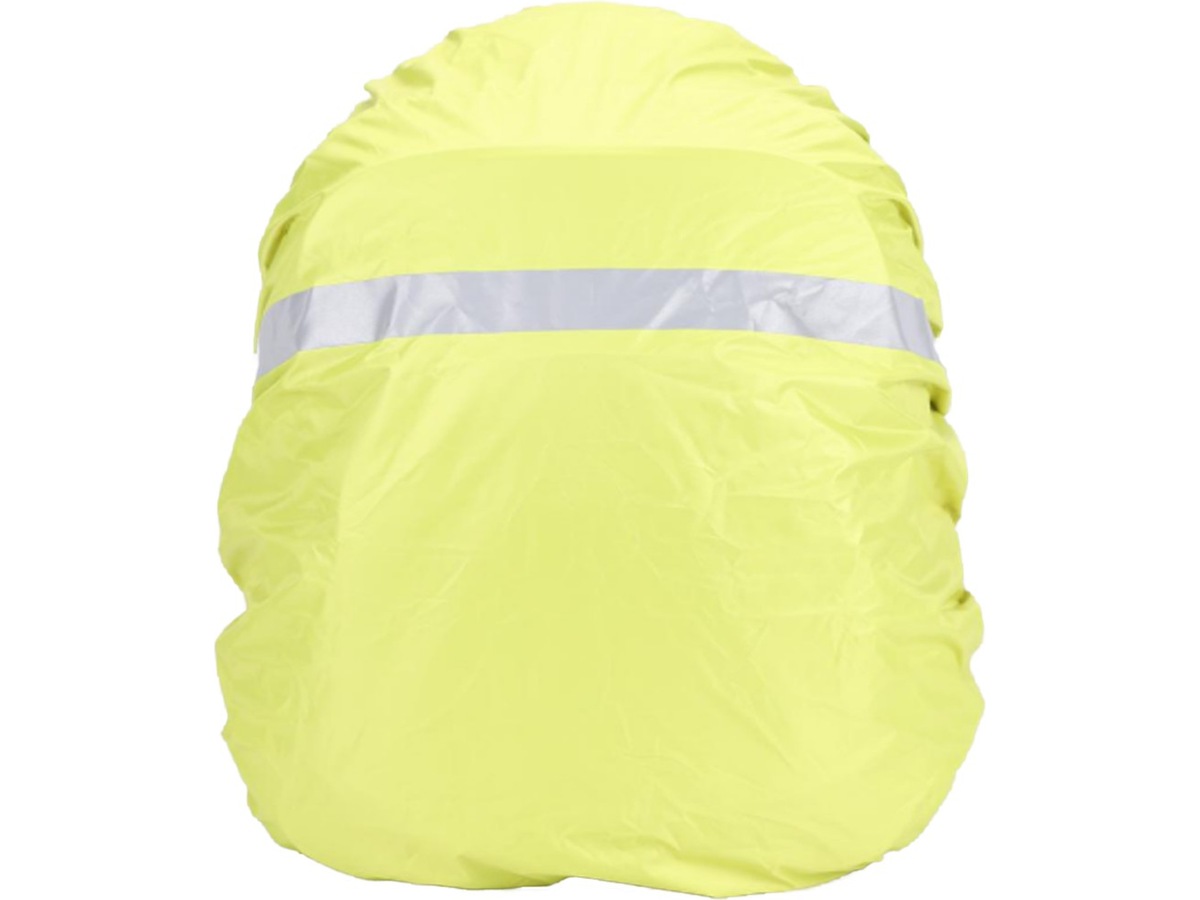 Det medföljande regnskyddet i reflekterande material med en extra reflekterande remsa placeras högst upp i ett fack med kardborreöppning. Regnskyddet är fastsytt för att det inte ska komma på avvägar. Ryggsäcken har ett stort, extra vadderat och gediget bärhandtag högst upp, samt ett hängfäste ifall du vill hänga upp ryggsäcken.