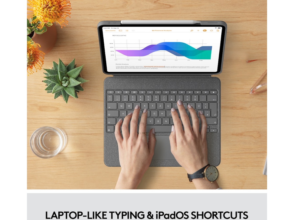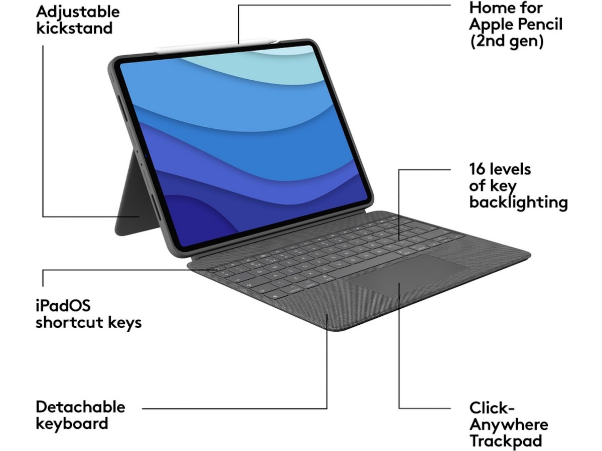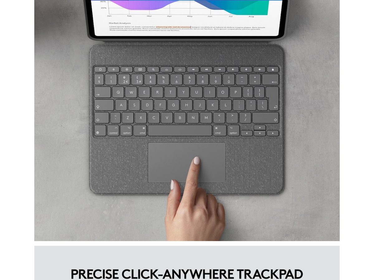 Upptäck tangentbordsfodralet som erbjuder helt nya nivåer av mångsidighet. Skriv, visa, rita och läs med iPad Pro - allt medan framsidan, baksidan och hörnen ligger tryggt och skyddade. Med den nya styrplattan för användning var som helst och Logitechs signaturtangentbord som på en bärbar dator, kan du enkelt både jobba och skapa. Möjligheter? Oändliga.