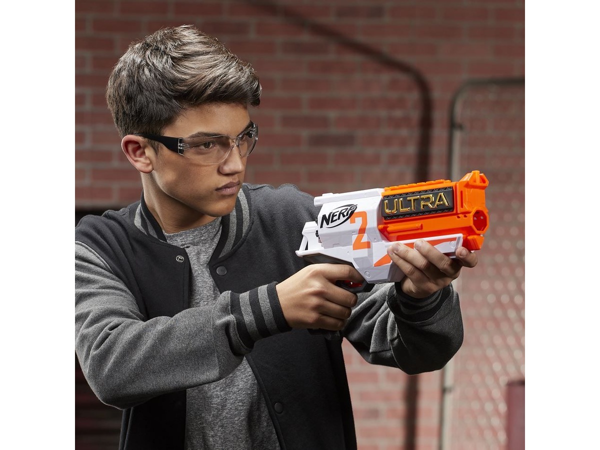 Håll ned accelerationsknappen för att starta Nerf Ultra Two-blastermotorn och tryck sedan på avtryckaren för att avfyra en pil. Tryck på avtryckaren igen för att avfyra ytterligare en pil. Detta är sprängaren för erfarna Nerf-kämpar som du som letar efter nästa nivå i prestanda och design för att dra full nytta av dina färdigheter och expertis. Var modig, var självbelåten och bli din bästa med Nerf Ultra Two-blaster och Nerf Ultra-pilar!