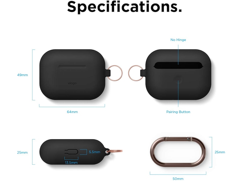 SKYDD Fodralet är gjort av högklassigt silikonmaterial för att skydda ditt AirPods-fodral mot repor och yttre påverkan. Dammhöljet skyddar AirPods Pro:s laddningsport mot damm och vätskor. En slitstark karbinhake medföljer fodralet, vilket ger dig möjlighet att på ett säkert sätt fästa ditt AirPods-fodral på bärväskor, resväskor, byxor, etc.