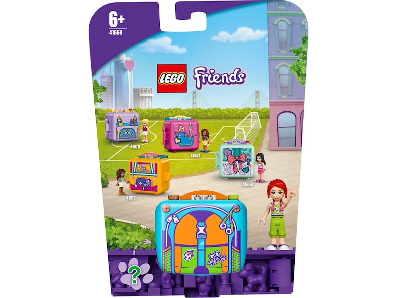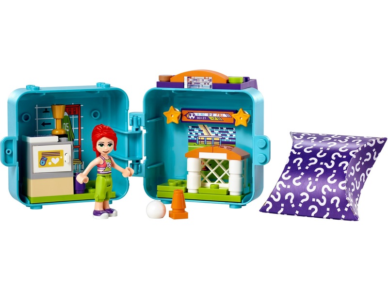 Denna kub är utformad för att likna en sportväska och innehåller minidockan Mia och hennes hund i en av fyra slumpmässiga färger. På kubens ena sidan finns ett mål och på den andra finns omklädningsrummet. Alla delar kan fästas på basen - vilket gör setet perfekt för sportlekar på språng - och allt kan packas ihop i kuben. Det är den perfekta leksaken att ta med till en kompis eller till skolan för lek på rasten. - Byggen i fickformat