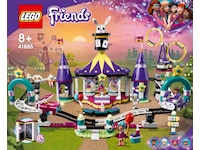 Barn och vuxna kommer att älska att återskapa glädjen från tivolit när de bygger och utforskar detta detaljrika set.Grymma autentiska detaljerDenna modell med 974 delar är ett inspirerande byggprojekt, och väl färdigbyggt finns det så många kreativa lekalternativ. I mitten finns ett stort tivolitält med tygtak – scenen för en magisk show. Barn kan låtsas vara magiker och med hjälp av en låda med smart funktion få LEGO Friends minidockorna att försvinna! De kan också låtsas vara en eldslukande jonglör. Setet innehåller en bergochdalbana, komplett med söta kaninbilar och kamera, plus en gungattraktion som verkligen snurrar till det. När lamporna släcks kan barn kolla in klossarna som lyser i mörkret!Vänskapens magiTransportera barn till Heartlake City, en värld med vardagshjältar och realistiska miljöer där de kan träffa vänner som är precis som dem.