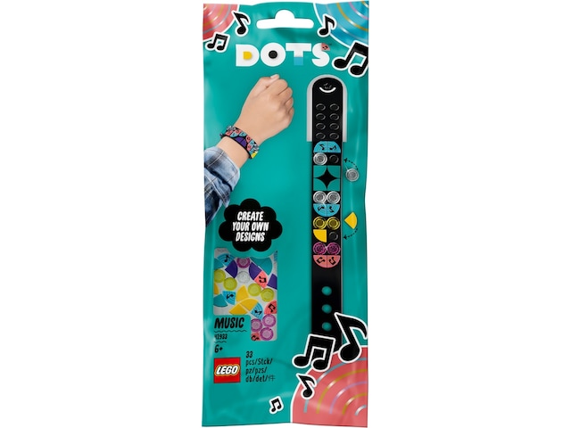 Överraska ett kreativt barn med det lekfulla setet LEGO DOTS Musikarmband (41933) och låt dem påbörja en resa full av oändliga pysselmöjligheter. Unika smycken att visa upp! Barn kan utveckla sin förmåga att uttrycka sig när de dekorerar armbandet, med ett justerbart band och 32 färgglada plattor. Lekarna börjar så fort påsen har öppnats! Detta set är roligt att leka med på egen hand för en snabb, fantasifull skapelse. Barn kan också använda plattorna från LEGO DOTS Extra DOTS - Serie3 och 4 (41921 och 41931) för att utöka sina mönster med coola nya idéer. Alla pysselfantaster kommer att älska detta kreativa set. Det hållbara armbandet, de färgglada plattorna och de speciella dekorerade plattorna blir en rolig present eller extragåva till barn från 6 år. Litet och helt bärbart. Armbandet är 20 cm långt och detta set är perfekt för unga designer som vill öva på att göra egna skapelser och sedan använda sin favoritversion. Öppna leksakspåsen och låt det roliga börja med att dekorera armbandet. Enkel inspiration på förpackningen gör det lätt att designa, eller så kan barn skapa sina egna mönster om och om igen. Ge barn en kreativ present med LEGO DOTS seten. Detta smarta, handgjorda armband inspirerar till obegränsade designmöjligheter för att hjälpa till att utveckla barns kreativitet och självförtroende genom lek. LEGO DOTS seten erbjuder fri kreativitet och uppmuntrar barn att uttrycka sig genom att skapa och anpassa smycken eller inredningsprylar, så att en ny grupp barn får uppleva i LEGO lek., LEGO delar uppfyller stränga branschstandarder för att säkerställa att de är hållbara, kompatibla och kan sättas ihop och dras isär lika lätt varje gång - så har det varit sedan 1958. LEGO delar tappas, värms, krossas, vrids och analyseras för att säkerställa att de uppfyller strikta globala säkerhetsstandarder.