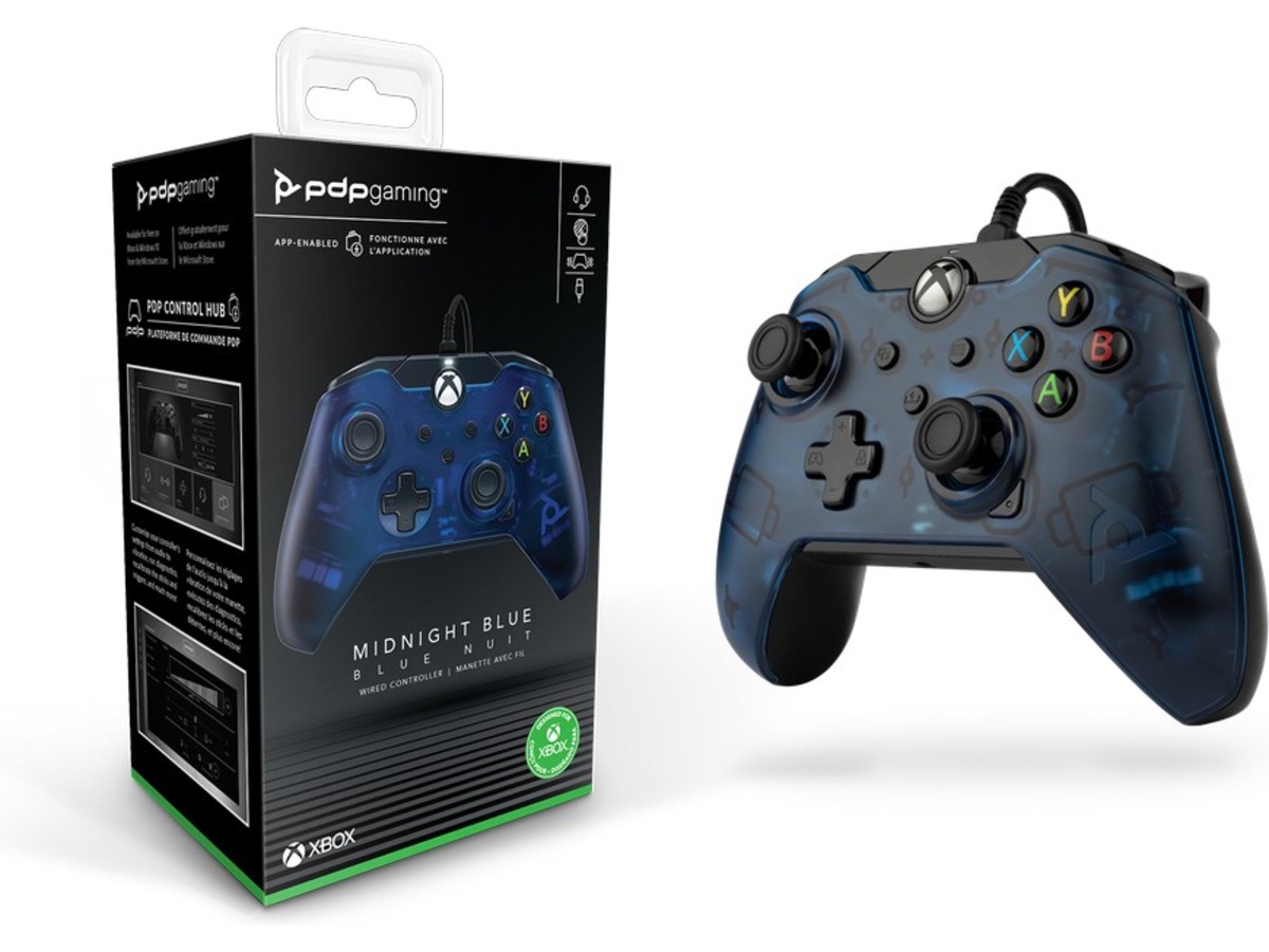 Midnight Blue PDP Gaming Wired Controller fungerar med Xbox Series X|S, Xbox One och Windows 10 och är en officiellt licensierad produkt.