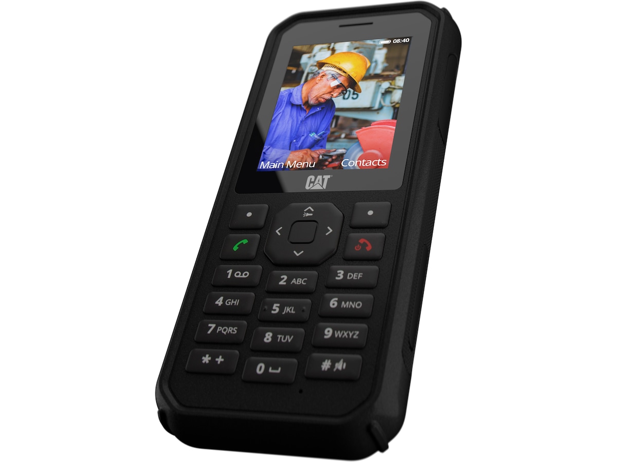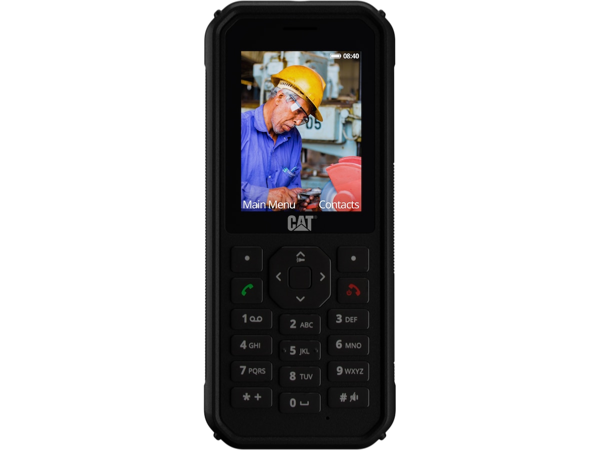 Introduktion till Cat B40, funktionstelefonen med 4G LTE, industriell styrka, professionell kvalitet och militärfunktioner. Samtal- och meddelandefunktioner som är lätta att använda, halkfri ram, handskvänliga tryckknappar, alfanumeriska knappar, en superljus ficklampa och gott om batteri.