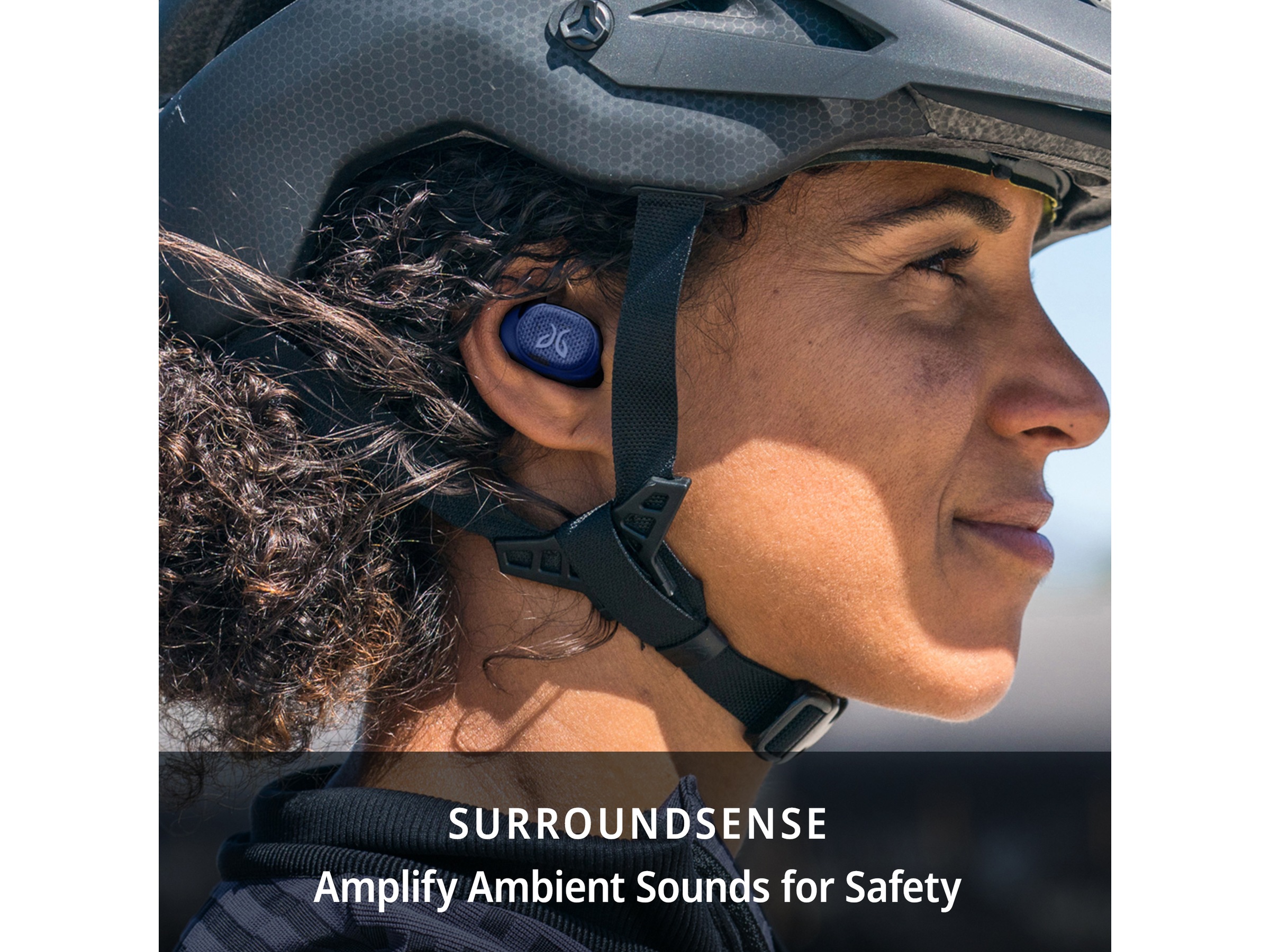 De perfekta hörlurarna för den aktiva. Vi presenterar Vista 2 med SurroundSense så att du kan hålla koll på vad som händer omkring dig och aktiv brusreducering för att fullt fokusera på dina fysiska prestationer. Du har kontrollen. Dessa hörlurar, som är vatten-, svett- och dammtäta med IP68-klassificering, är designade för maximal tålighet, testade i den riktiga världen och garanterade att prestera. Vindskyddade mikrofoner övervakar omgivande ljud vilket gör att du kan filtrera bort dem för att öka fokus eller blanda in dem i ljudsignalen för ökad rumslig medvetenhet. Ihop med Jaybirds klassiska passform, funktion och batteritid på 24 timmar* så blir Vista 2 den perfekta, äkta trådlösa ljudupplevelsen.