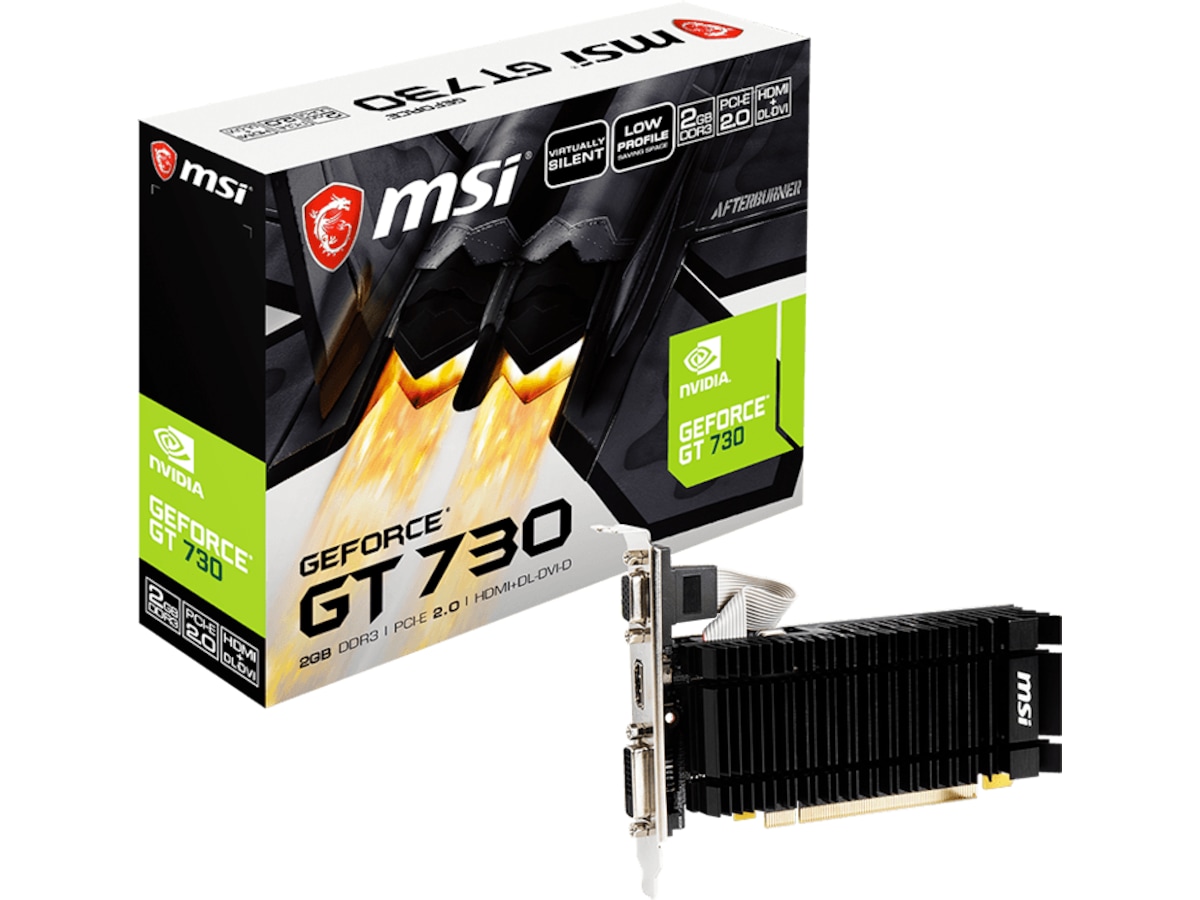 MSI GeForce GT 730 2GD3H LP V1 Lågprofilsdesign Lågprofilsdesign sparar mer utrymme. Användare kan bygga smalare eller mindre system enklare. Afterburner överklockningsverktyg Stöder videoinspelning i spel. Stöder trådlös kontroll av android/iOS handhållna enheter. Stöder inbyggt DX12 effekttest. Native HDMI 1.4a-utgång HDMI 1.4a stöder 1080P HD filmuppspelning och TrueHD eller DTS-HD ljudtransmission. Redo för 3DVision Stöd för NVIDIA 3D Vision som ger en helt och hållet omslutande stereoskopisk 3D-upplevelse till datorn.