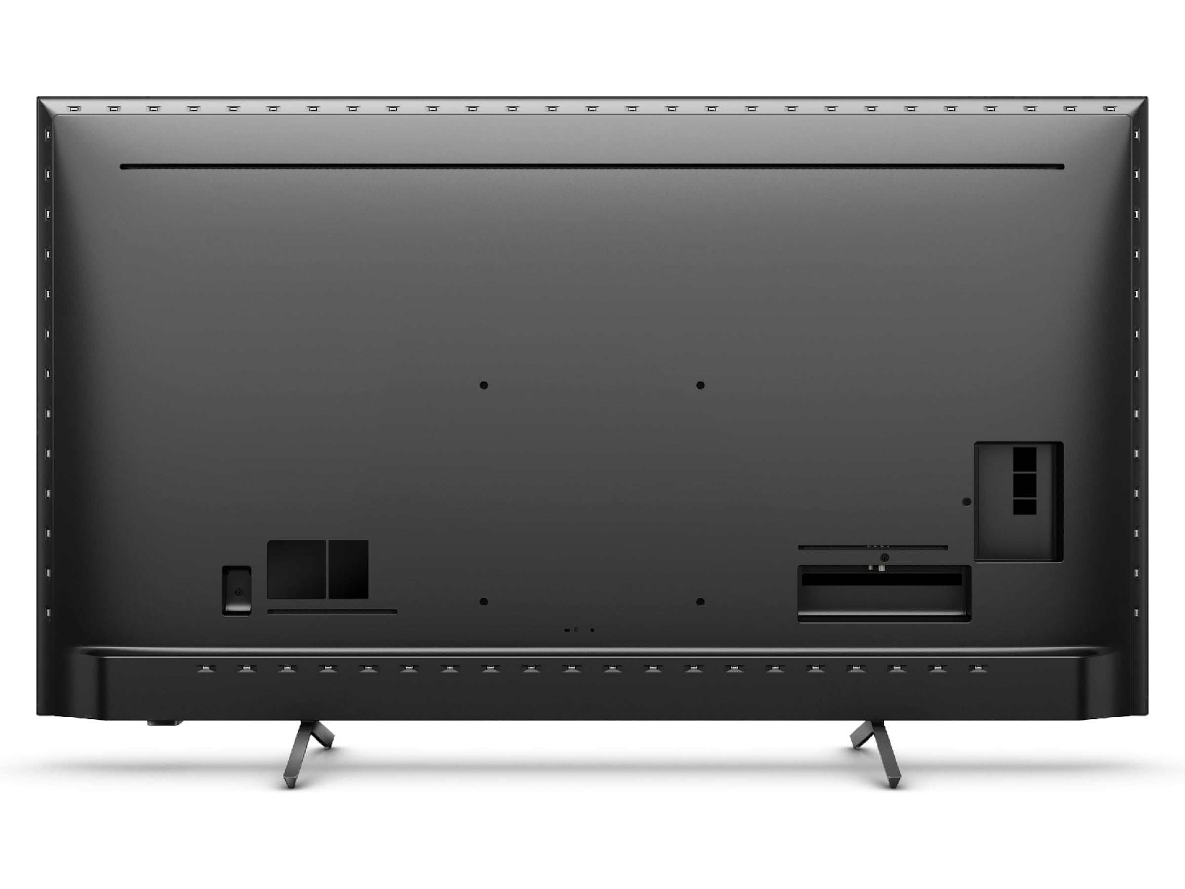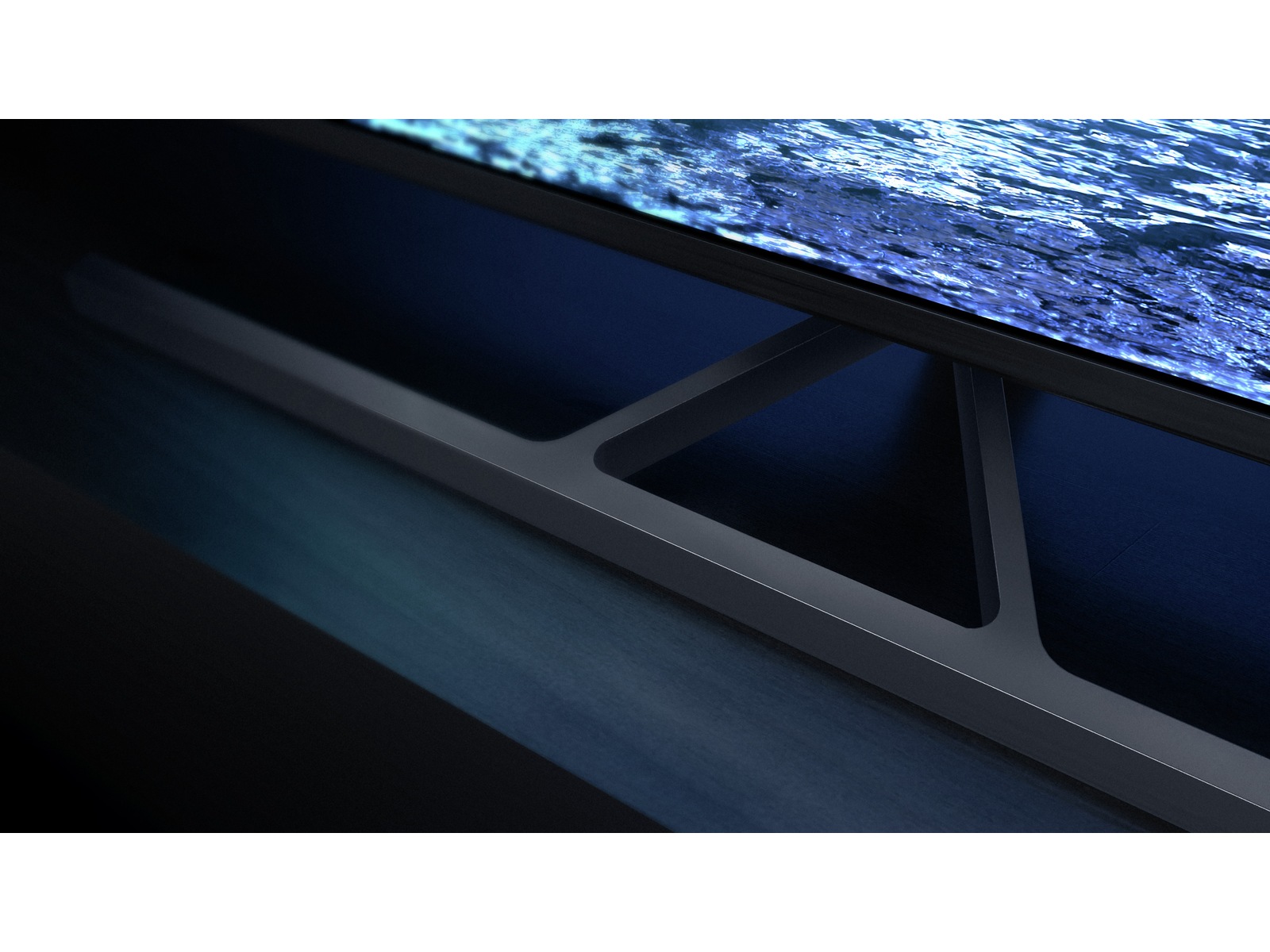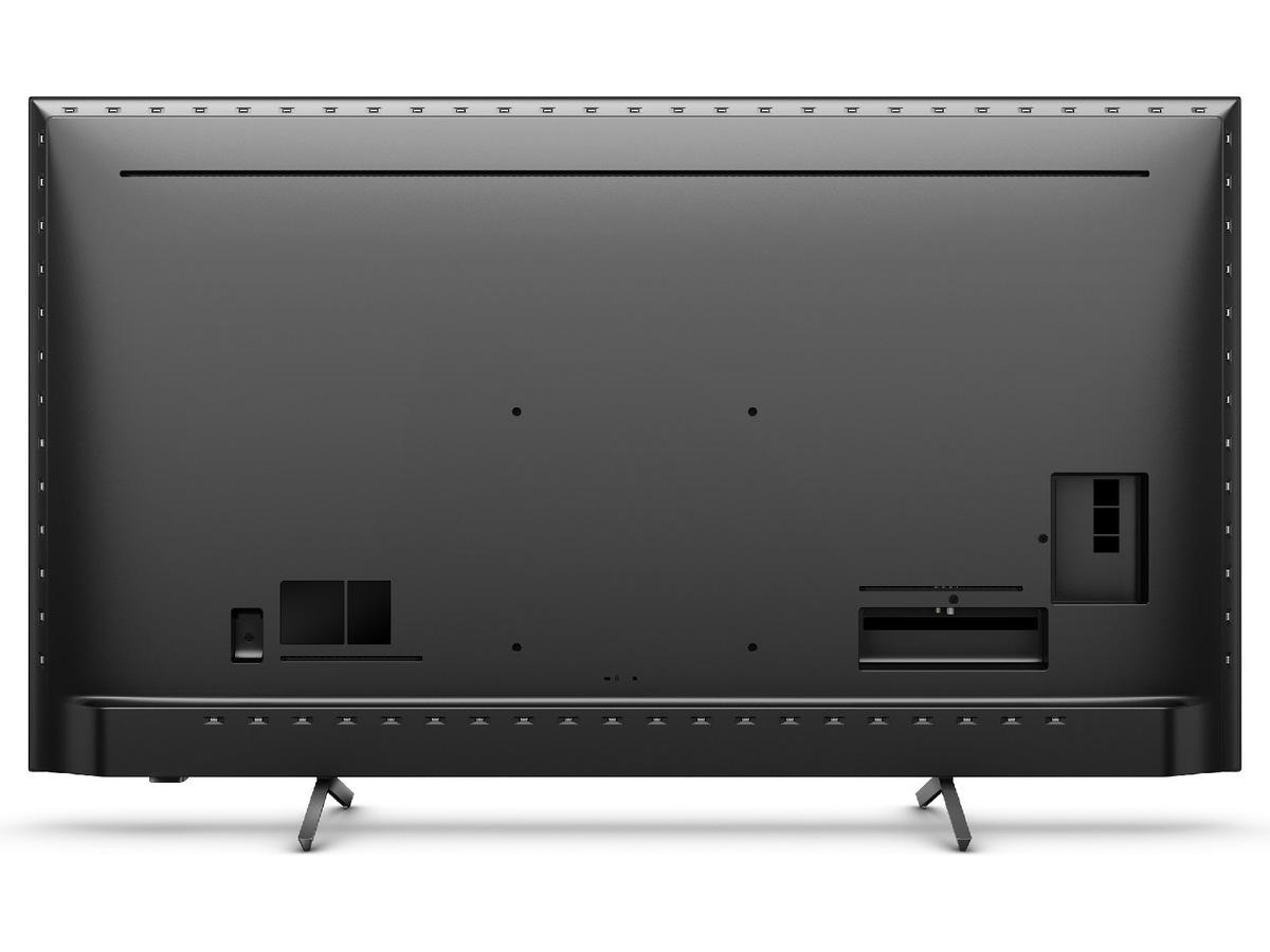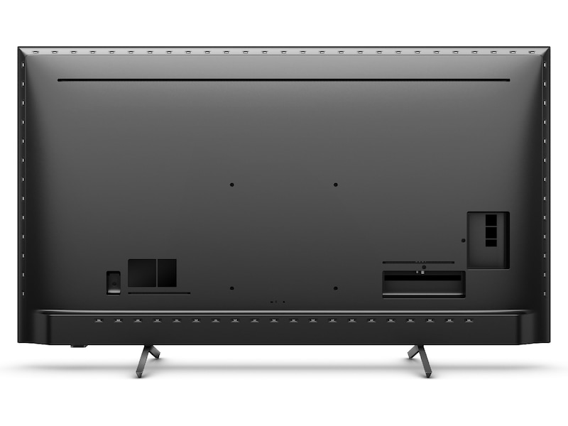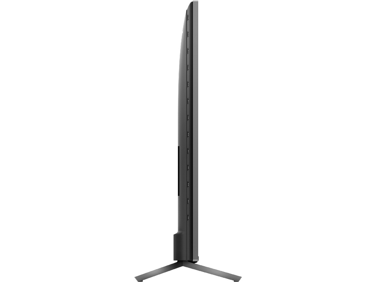 Den praktiskt taget ramlösa skärmen på denna 4K smart -TV passar överallt. De smala fötterna får det att se ut som om skärmen svävar över TV:n, och du kan förlänga fötterna för att rymma längre ljudpaneler.