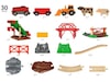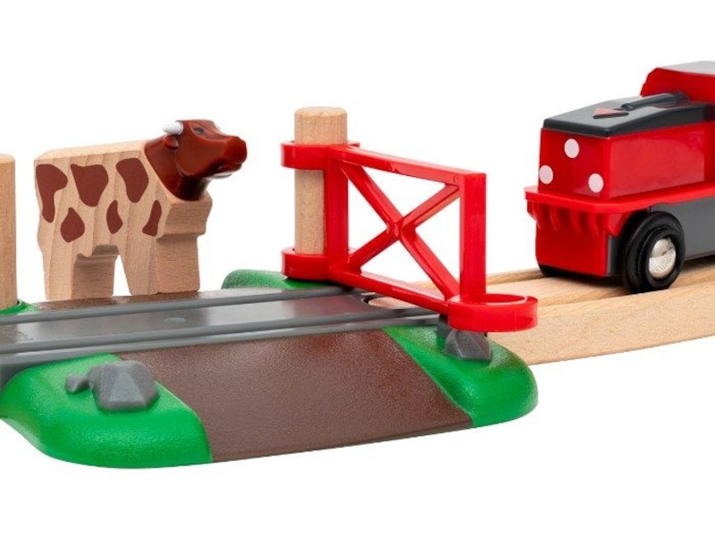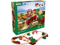 BRIO®World Bondgårds-set 33984 Bondgårds-setet med 30 delar är redo att ta dig ut i naturen med en lugn gårdsatmosfär. Det batteridrivna godstågsloket är på väg och redo att hämta djurfoder och leverera till de lekfulla djuren.