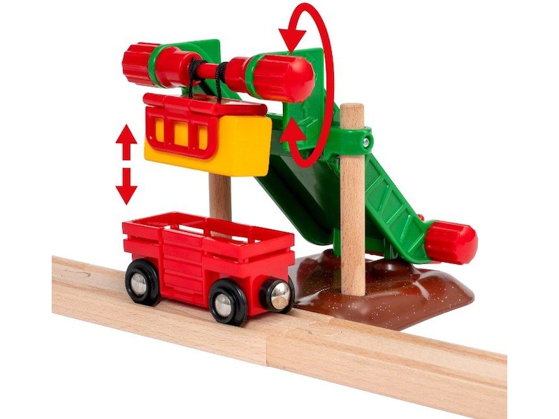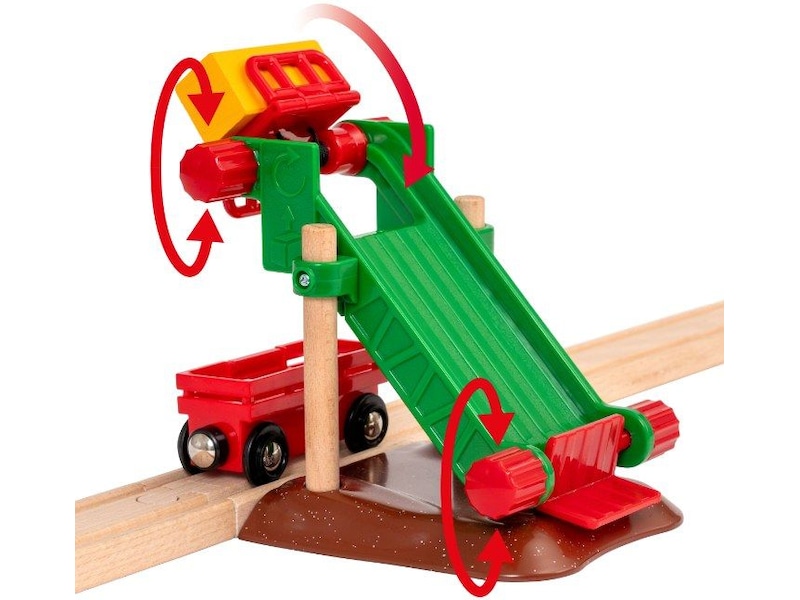 Använd avlastningsstationen för hö i detta leksakståg för att lasta hö på och av godsvagnen.