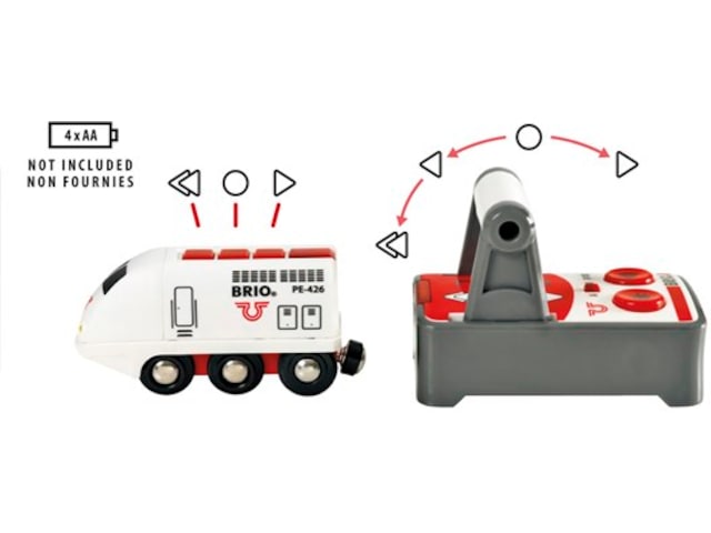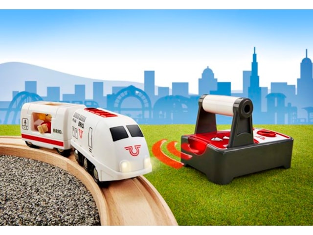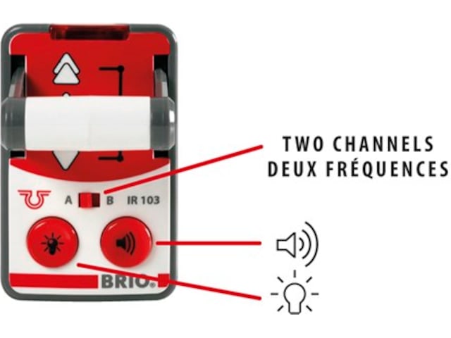 Den unika styrenheten har användarvänliga back- och stoppfunktioner, två olika hastigheter framåt samt A- och B-frekvenser för att styra flera fjärrstyrda tåg i samma system.