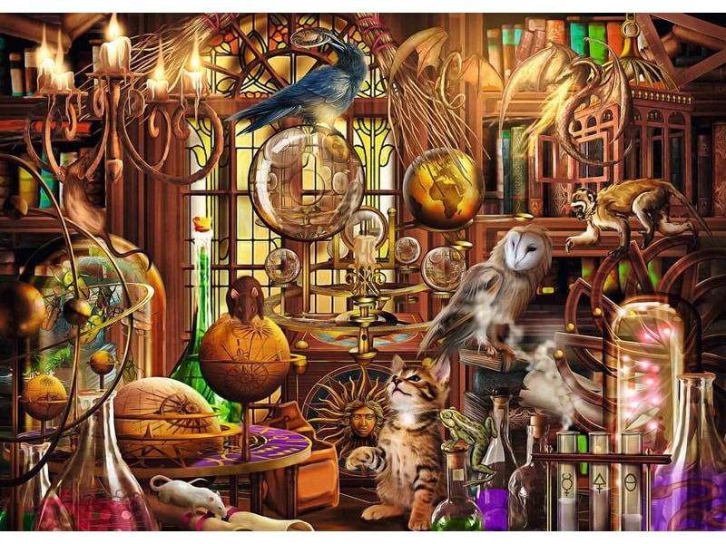 Förtrolla dig till vila och avkoppling när du pusslar ihop de magiska underverk och djurmenagerier som finns i vårt pussel "Merlins laboratorium"!