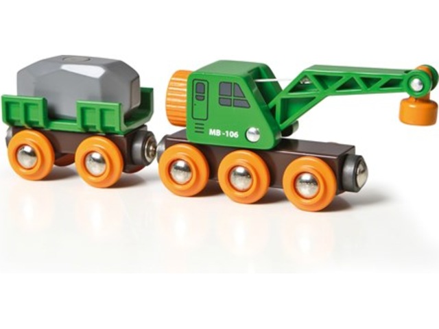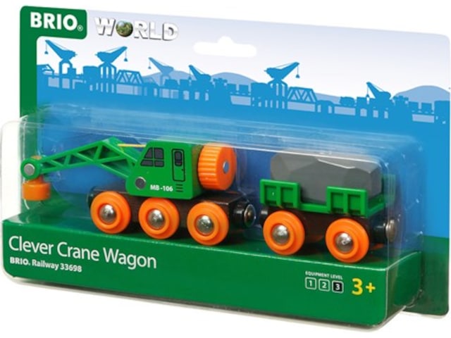 BRIO® Kranbil Lyft, flytta och lossa. Vad ska vi flytta på idag? Kranbilen får jobbet gjort oavsett vilken sorts gods som ska lastas/lossas. Sätt igång!