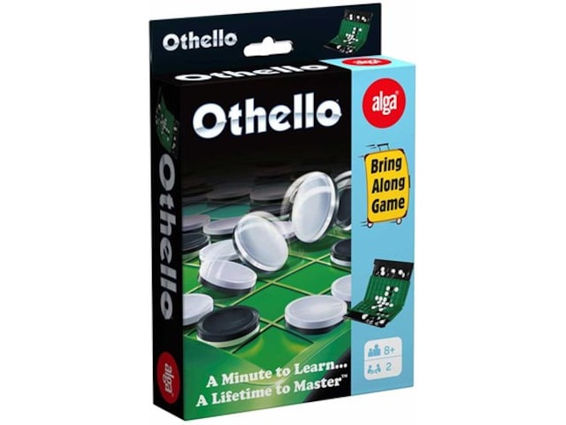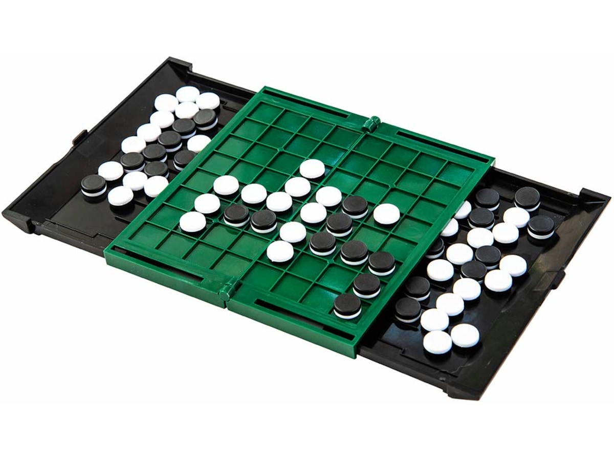 Klassisk Othello i praktisk reseutgåva. Innehåller en vikbar spelplan, pjäser och ett regelhäfte.