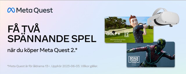 Utforska nya dimensioner av spel, sociala medier och underhållning eller revolutionera din fitnessträning. Utan sladdar, begränsningar, PC eller konsol, är du redo att komma igång på några minuter med hjälp av Meta smartphone-app, ditt Facebook-konto och en trådlös internetuppkoppling. En otrolig multisensorisk upplevelse låter dig uppslukas av ett 3D-positionerat bioljud via de inbyggda högtalarna och en grafik med otroligt hög upplösning som gör att du ser varje detalj i varje virtuell värld, även när du rör dig snabbt. Ett inbyggt batteri på 10 000 mAh som ger upp till tre timmars speltid eller tio timmars underhållning i kombination med en bekväm design, gör att du kan utforska djupare och mer under längre tid, varje gång du går in i VR. Välj mellan alternativen 128 GB och 256 GB för att passa din budget och dina behov av VR-minne. Intuitiva pekkontroller överför dina rörelser direkt till VR. Utforska över 1 000 titlar genom att ansluta ditt VR-headset till en spelkompatibel dator med en Link-kabel (dator och kabel säljs separat). Dela upplevelsen på virtuella sociala utrymmen, i spel med flera spelare och på virtuella arenor. Låt andra se din prestation genom att streama din VR-upplevelse till kompatibla TV-apparater och andra skärmar. Det finns inga gränser för vad du kan spela, skapa och upptäcka med Meta Quest 2.