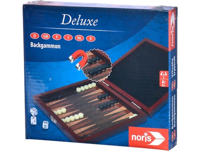 Deluxe Backgammon Resespel Backgammon i resestorlek från Noris. Spelet har magnetiska spelpjäser som kommer i en trälåda. Mått: 16 x 16 cm. Från 8 år.
