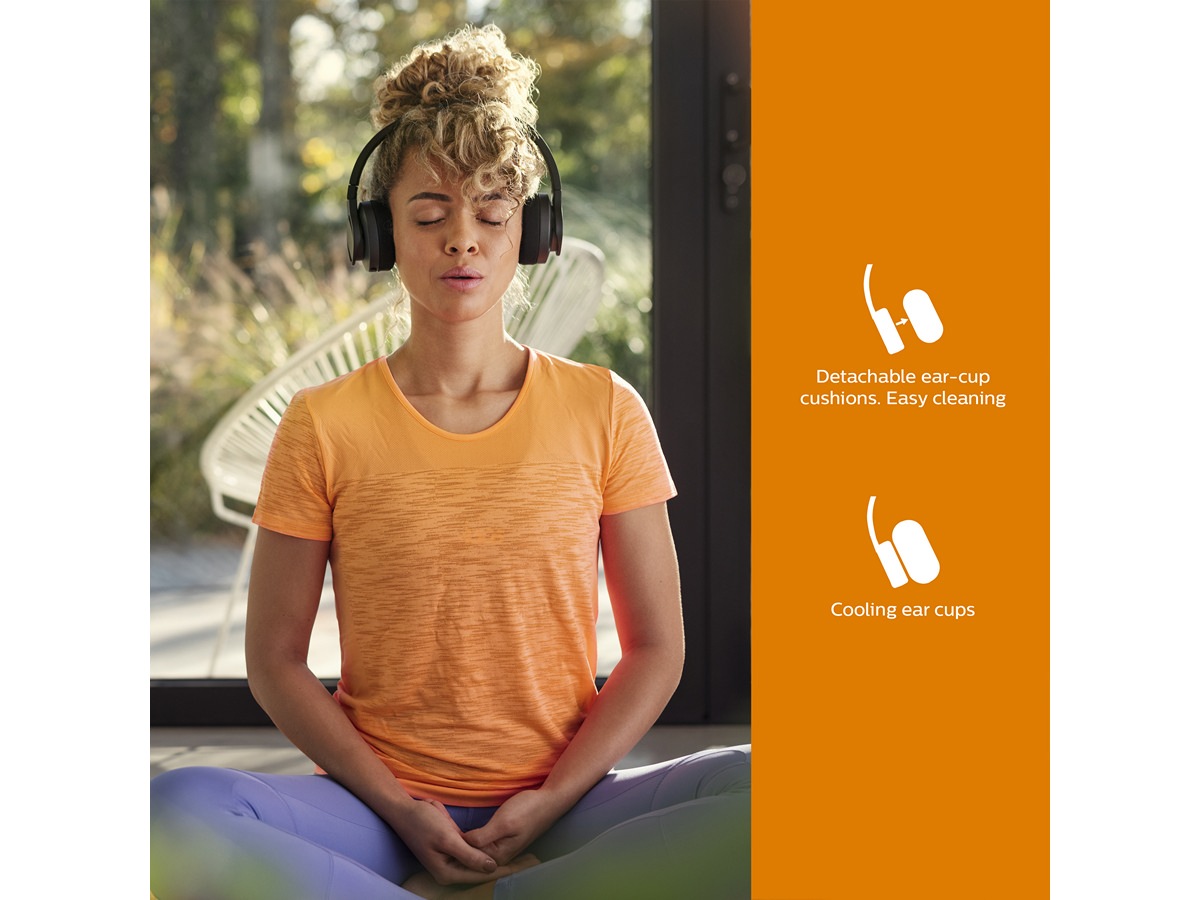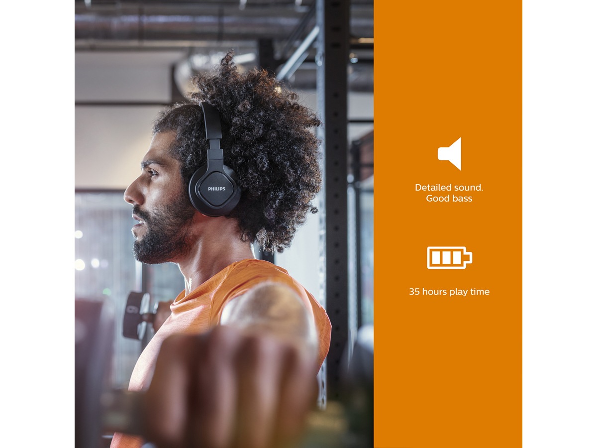 De här kraftfulla, lätta trådlösa on-ear-hörlurarna är gjorda för en aktiv livsstil. Borttagbara och tvättbara öronkuddsskydd ger en behaglig passform oavsett om du springer på löpbandet eller på stranden. 35 timmars speltid gör att du kan fortsätta lyssna.