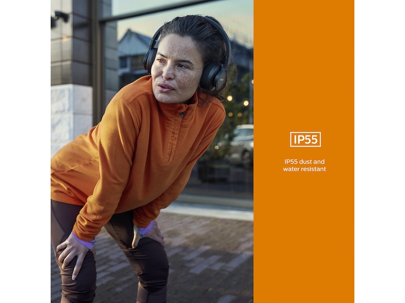 IP55-klassning innebär att hörlurarna passar lika bra i dammiga löpspår som i kraftigt regn. Hur hårt du än svettas – och vart du än går – kommer inget att stoppa dig.
