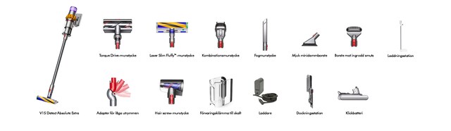 - Sugförmåga testad enligt EN IEC62885-4 CL5.8 och CL5.9, testad vid den flexibla öppningen med full behållare i Boost mode, jämfört med andra sladdlösa dammsugare på marknaden.