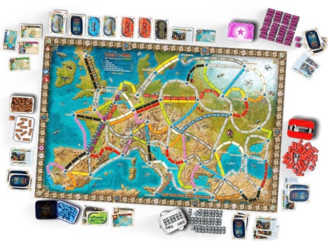 Den här versionen har fint detaljerade tåg och stationer i plast och levereras i vackra plåtlådor och är en slutgiltig utgåva av det klassiska Ticket to Ride® Europe: överdimensionerad bräda, alla destinationsbiljetter som publicerats hittills och en uppsättning vackra nya illustrationer.