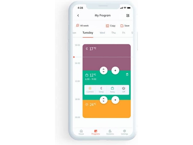 Rumstemperaturen kan styras med din smartphone och Mill -appen enligt dina dagliga rutiner. Panelugnen har en integrerad WiFi -modul och ett nytt WiFi -chip som snabbt ansluts till din enhet via Bluetooth.