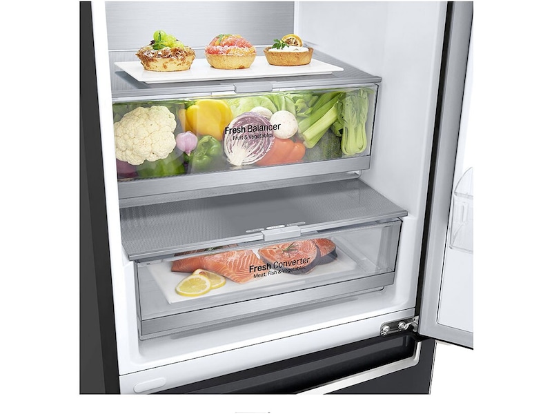 LG:s FRESH Balancer™ bibehåller den optimala fuktbalansen för frukt och grönsaker, vilket ger dem en längre hållbarhet.