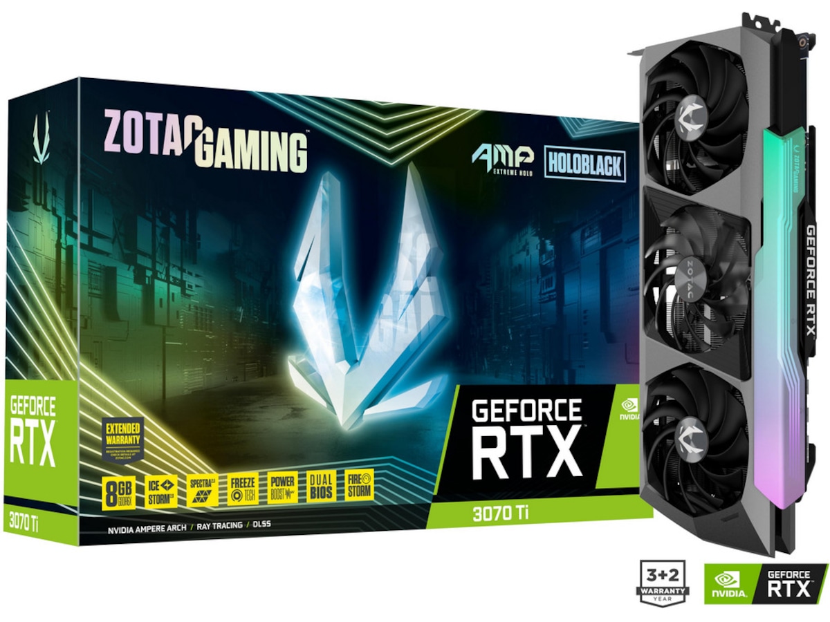 Den ultimata ZOTAC GAMING GeForce RTX 30 Series GPU:n baserad på NVIDIA Ampere-arkitekturen är här med AMP Extreme Holo. ZOTAC GAMING GeForce RTX 3070 Ti AMP Extreme Holo är byggd med förbättrade RT Cores och Tensor Cores, nya strömmande multiprocessorer och supersnabbt GDDR6X-minne och ger en absolut spelupplevelse med ultragrafisk trovärdighet.