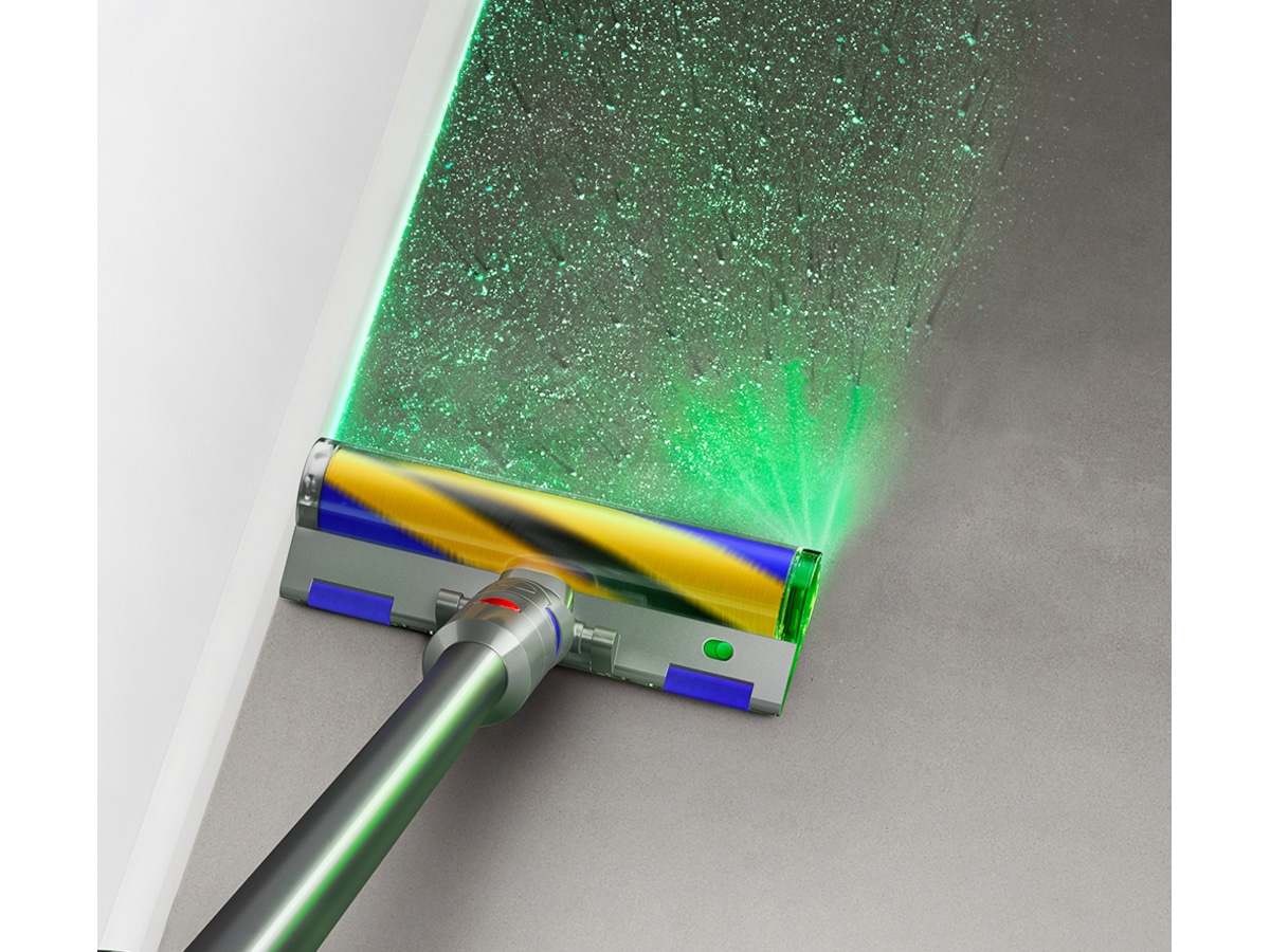 En exakt vinklad laser ser till att osynligt damm blir synligt på hårda golv – för att du inte ska missa något.²