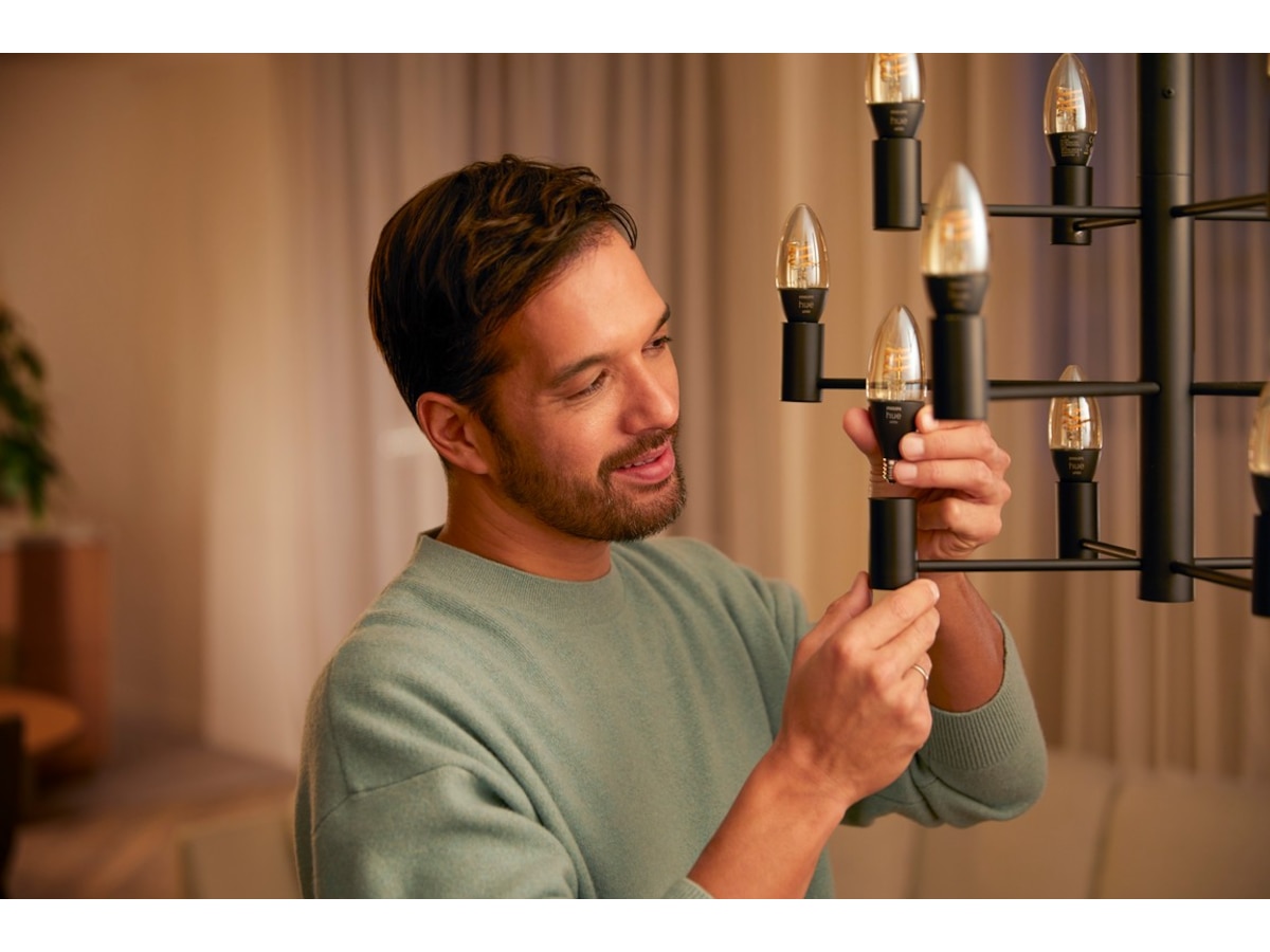 B39-formen och dess E14 sockel passar de flesta mindre armaturer och likaså perfekt för kristallkronor som kräver flera mindre ljuskällor som skapar en unik touch till ditt vardagsrum eller annan yta där du vill skapa atmosfär. Hue White ger dig grundläggande funktionaliteter och ger dig ett fantastiskt ljus och komfort genom kontroll hemma som borta.