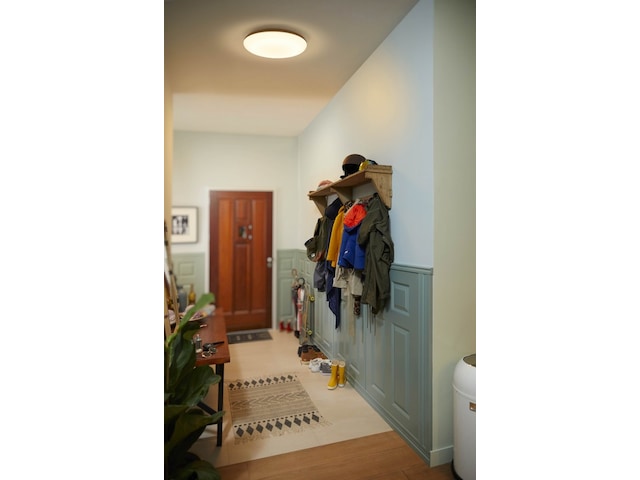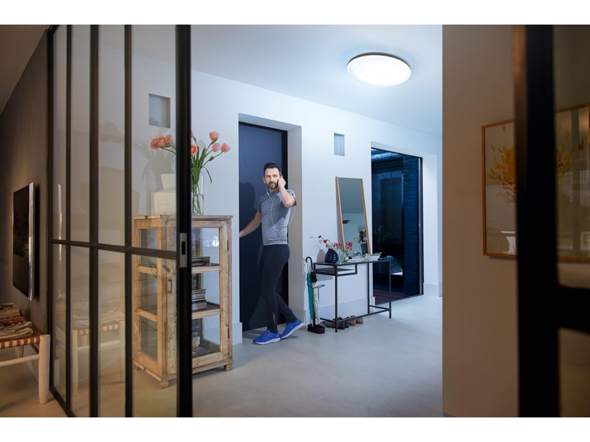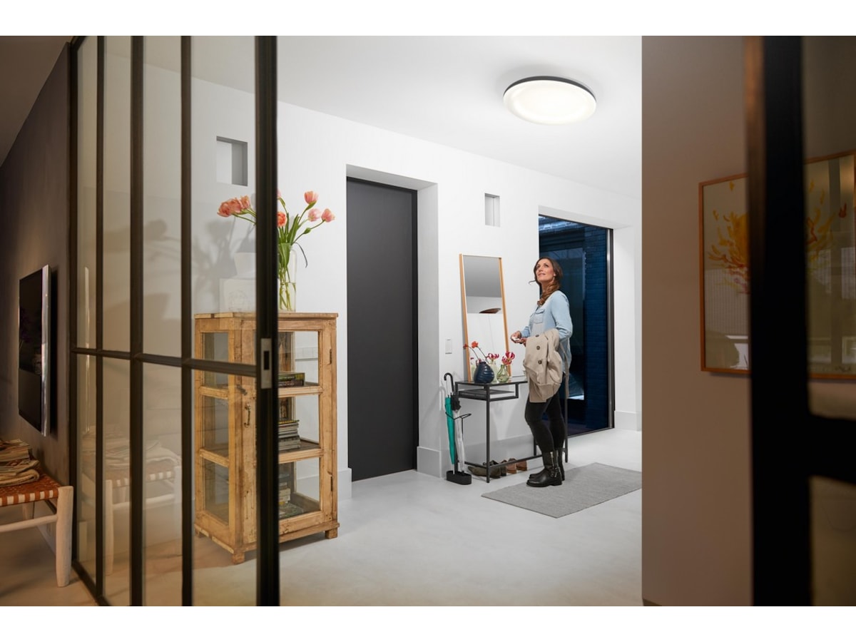 Formen på armaturen försäkrar en jämn och bred belysningsyta och med LED-modulen i kategorin White ambiance får du möjligheten att ändra mellan kalla och varma toner av vitt ljus.