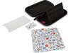 På insidan hittar du ett filtfoder och ett inbyggt spelställ med plats för 4 spelkort och en liten nätficka. Satsen innehåller ett skärmskydd med applikator för att förhindra repor och en skräddarsydd rengöringsduk i mikrofiber.