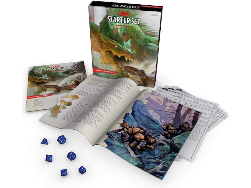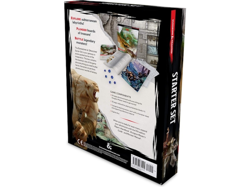 Den här lådan innehåller spelets grundläggande regler plus allt du behöver för att spela heroiska karaktärer på farliga äventyr i fantasivärldar. Idealisk för en grupp på 4 till 6 spelare, Dungeons & Dragons Starter Set innehåller en 64-sidig äventyrsbok, en 32-sidig regelbok för att spela karaktärer nivå 1-5, fem förgenererade karaktärer med karaktärsblad och stödjande referensmaterial, och sex tärningar.