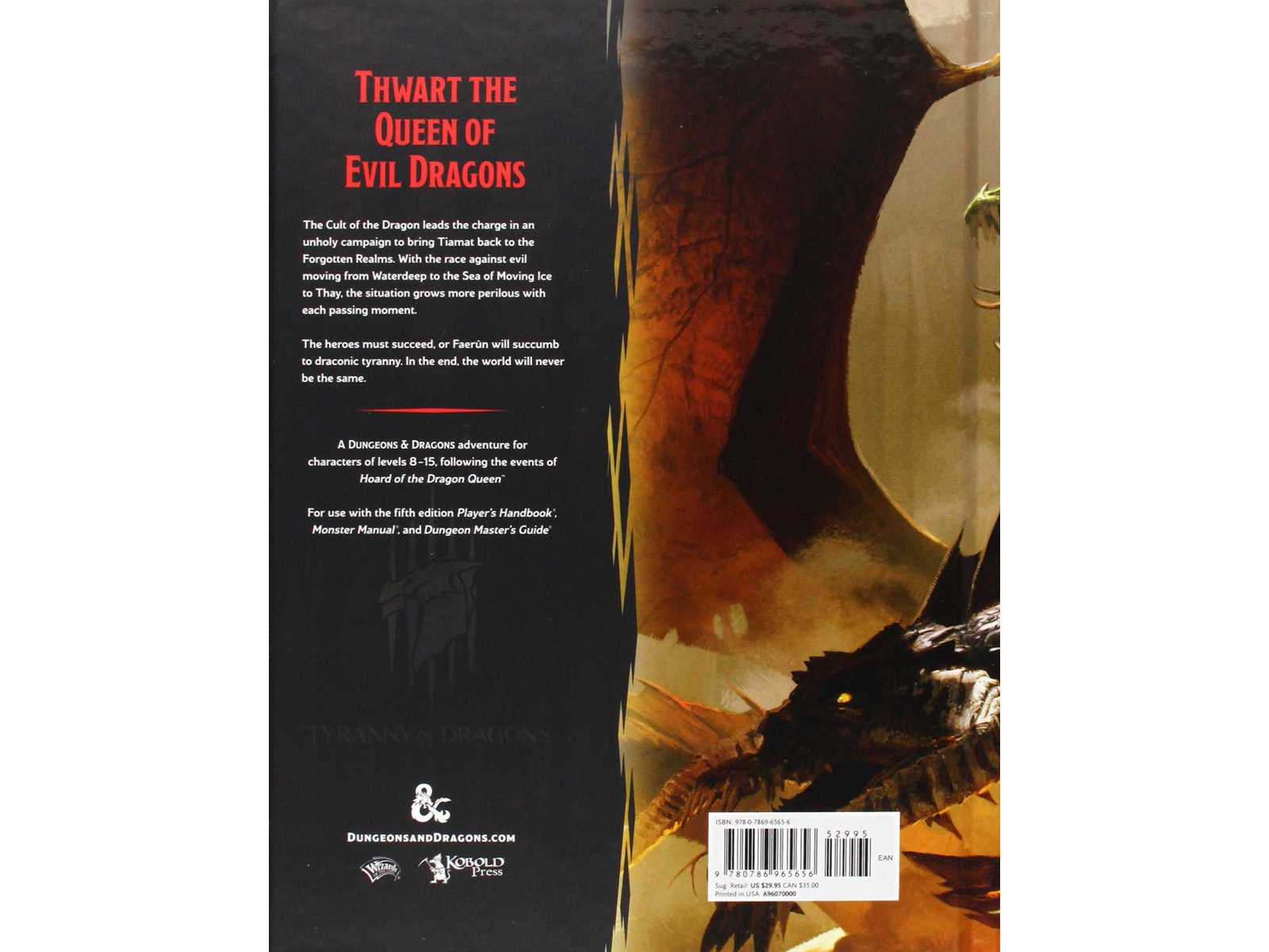 Cult of the Dragon leder kampen i ett oheligt korståg för att återföra Tiamat till riket, och situationen blir farligare för goda människor för varje ögonblick som går. Slaget blir alltmer politiskt när det uppstår möjligheter att samla allierade och få fördelar. Från Waterdeep till Sea of Moving Ice till Thay, det är en tävling mot det onda. Lyckas eller ge efter för förtrycket av drakonisk tyranni. Vinn eller förlora, livet kommer aldrig att bli detsamma igen.