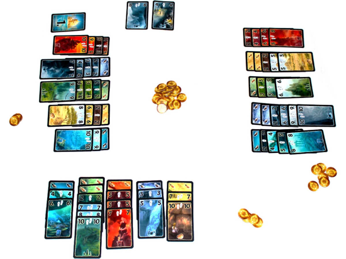 Använd dina kort för att ta dig fram på expeditionsvägar som tar dig till avlägsna och mystiska hörn av jorden: till ett övergivet bergstempel, en förfallande stencirkel, en stad som sjunkit under havet, en gammal stenåldersboplats och en stad inne i ett berg.