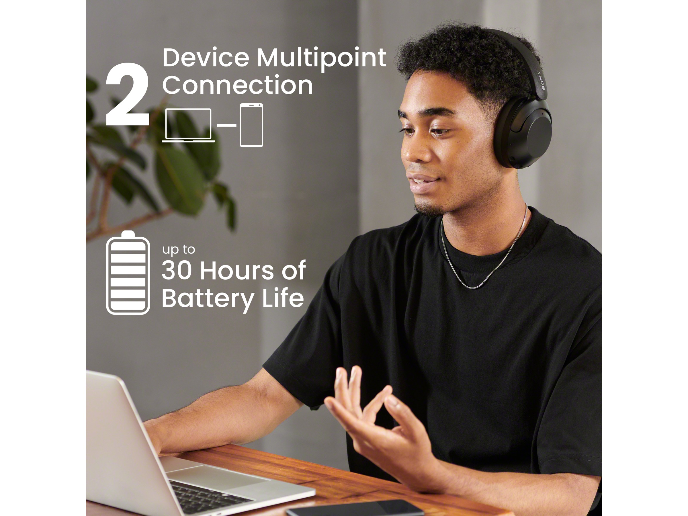 Sonys hörlurar WH-XB910N med Multipoint connection kan kopplas ihop med två andra Bluetooth®-enheter samtidigt. Om du exempelvis har anslutit dina hörlurar med två enheter och du samtidigt får ett telefonsamtal på din mobiltelefon, kommer hörlurarna per automatik att ansluta till rätt enhet. Du kan också snabbt och smidigt växla mellan enheterna genom ett enkelt knapptryck.