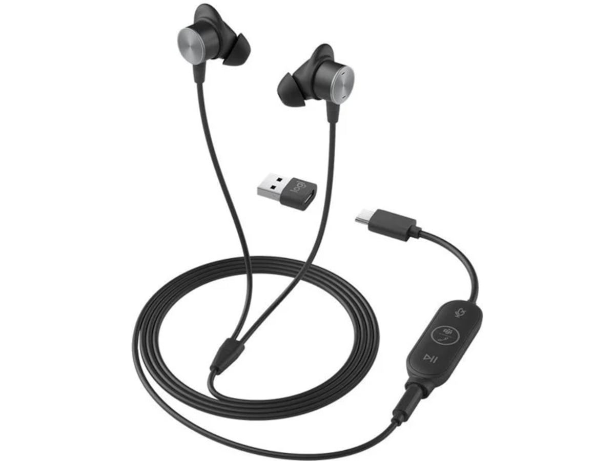 USB-C till USB-A-adapter, USB-C-styrenhet, 4 par silikonhörsnäckor (extra små, små, medelstora, stora), Bärpåse