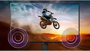 Ett par högkvalitativa stereohögtalare inbyggda i en bildskärm. De kan vara synligt framåtriktade eller osynligt nedåtriktade, uppåtriktade, bakåtriktade osv. beroende på modell och design.