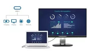 USB-C gör det möjligt att ladda bärbara dator direkt från skärmen