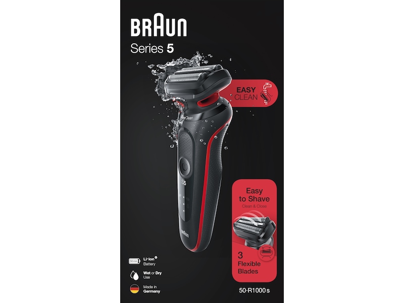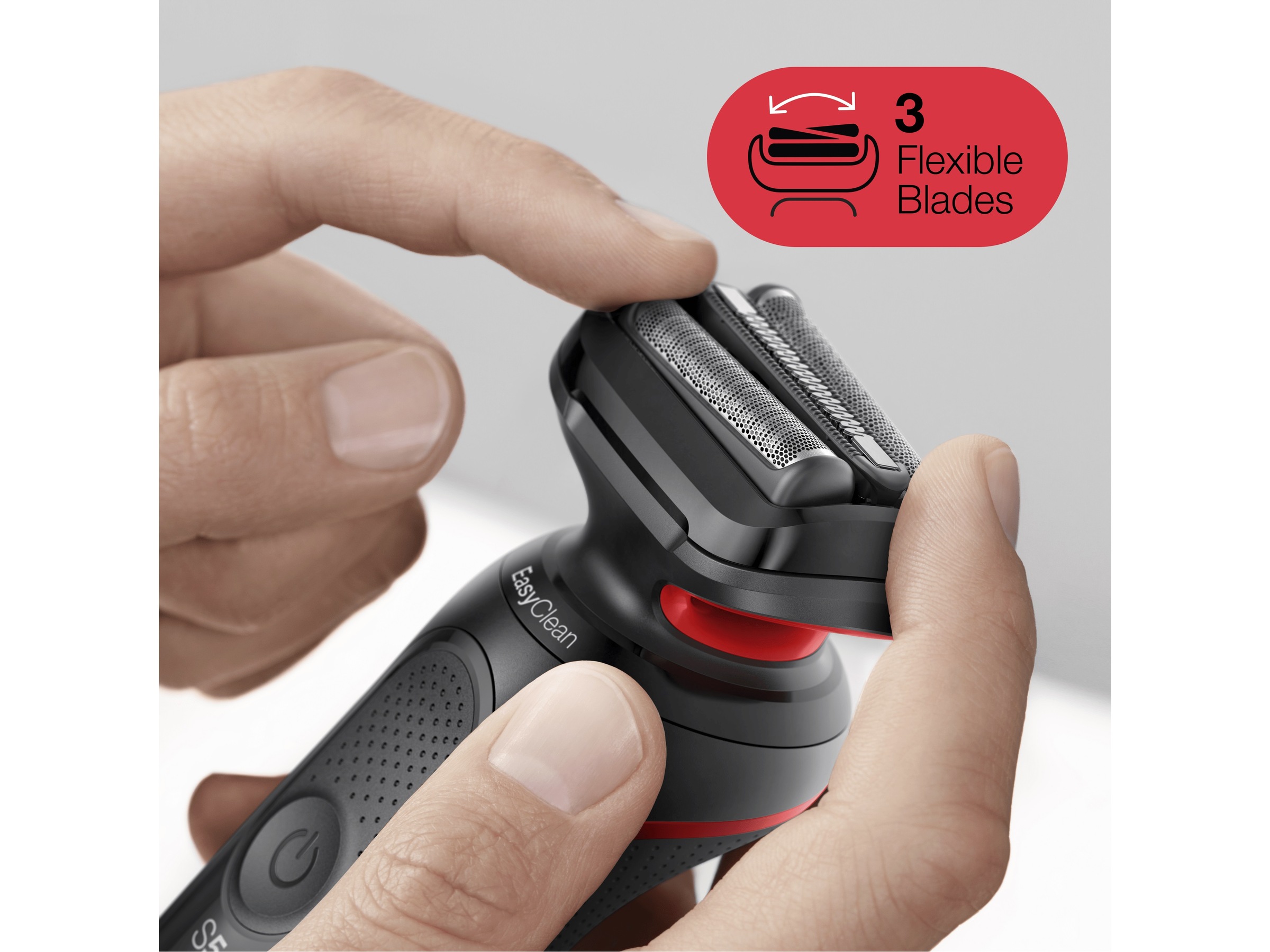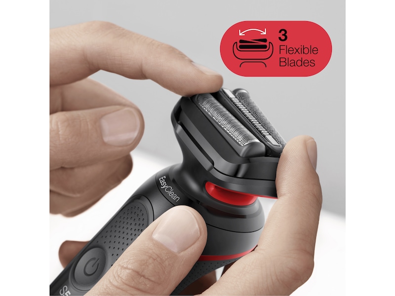 Braun Series 5 rakapparat för män gör rakningen enkel med 3 Flexibla Blad som anpassar sig efter ansiktets konturer.