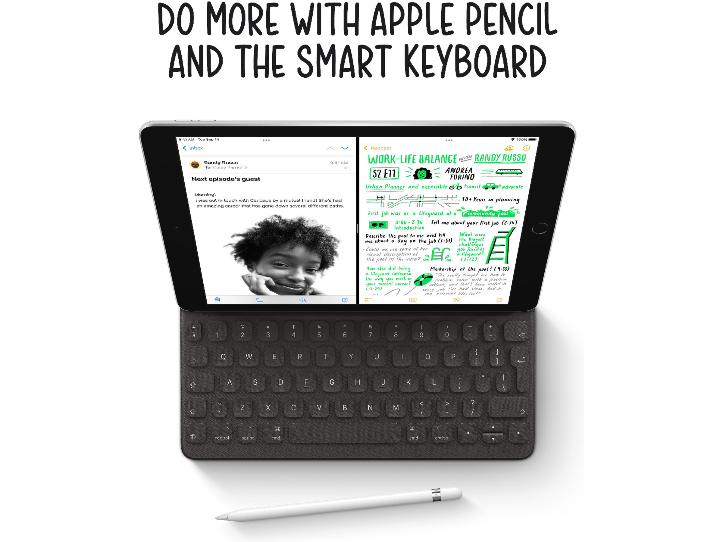 • Fungerar med Apple Pencil (1:a generationens) och Smart Keyboard