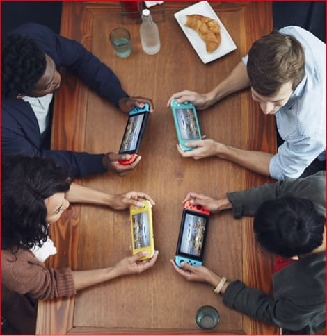 Länka upp till åtta Nintendo Switch- och Nintendo Switch Lite-system tillsammans, för att spela med flera spelare var som helst.
