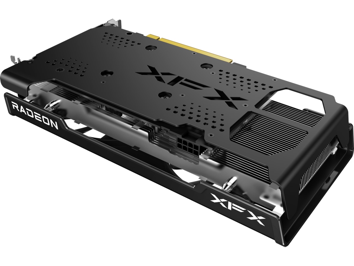 XFX-fläktarna är utrustade för att köra på högsta möjliga prestanda, medan våra Zero dB fläktsystem kommer att hålla dina fläktar igång på effektiv RPM för att minimera irriterande fläktljud genom att sänka RPM ända ner till noll RPM. När värmen är hög under intensiv gaming kommer våra fläktar att öka efter behov.