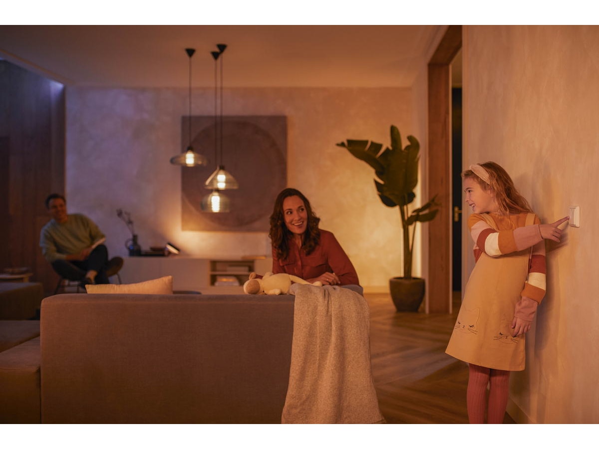 Se till att din smarta belysning alltid kan nås när någon använder den vanliga strömbrytaren för att släcka belysningen. Med Hue wall switch module är belysningen alltid ansluten till en strömmen.
