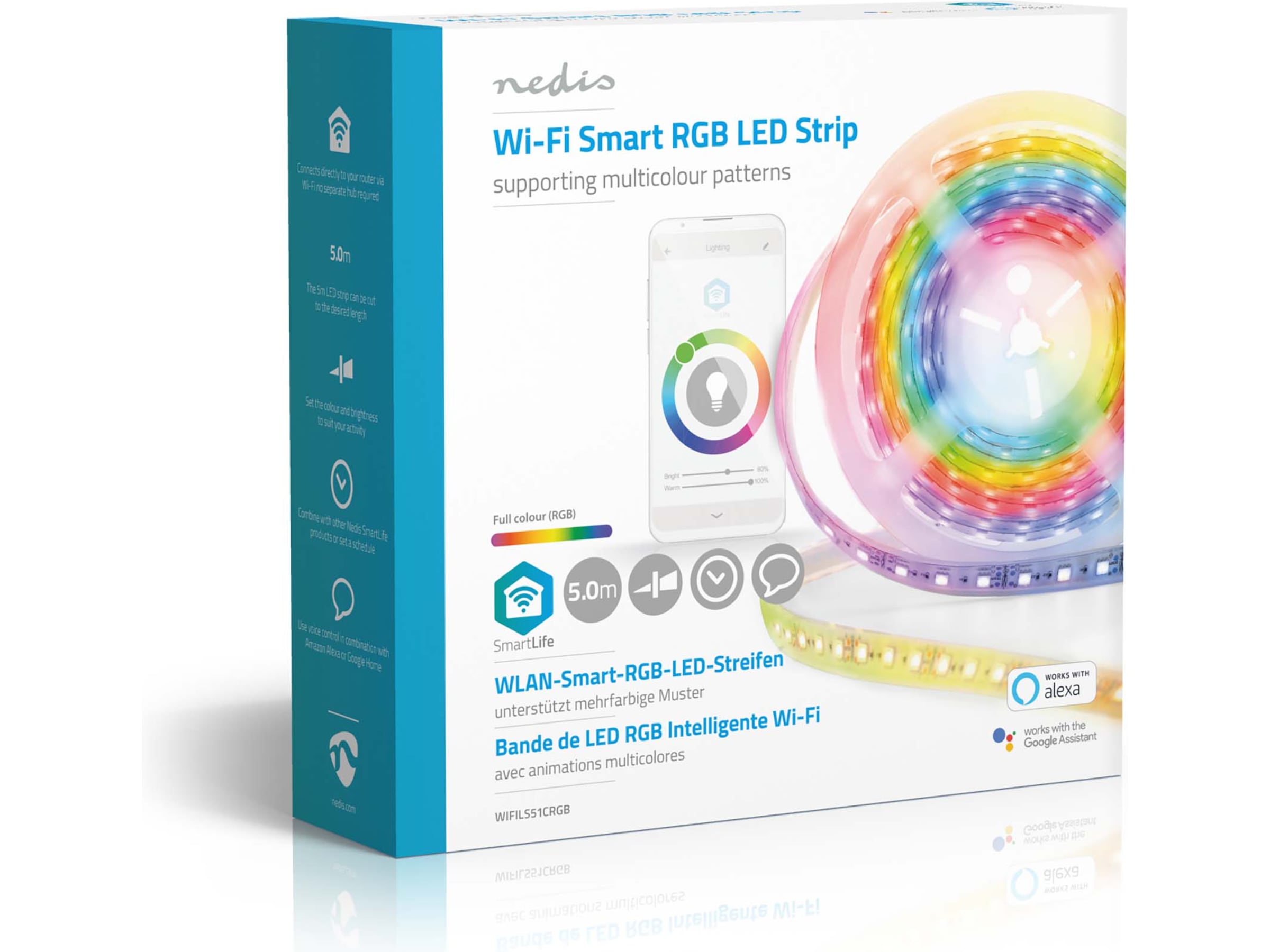 Ställ in ljusstyrka, färger eller skapa ett statiskt eller rörligt flerfärgat mönster i appen Nedis® SmartLife. Skapa scheman och automatiseringar eller använd din röst för att styra LED-slingan tillsammans med alla andra produkter i serien Nedis® SmartLife.