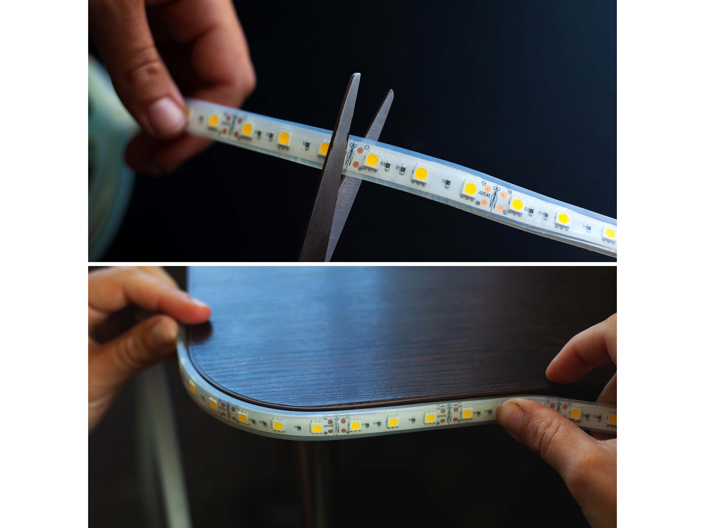 LED-slingan kan användas både inom- och utomhus (IP65) så länge som kontrollenheten är inomhus och den dubbelsidiga tejpremsan (tre meter) har placerats ut i förväg för enkel installation på rena och plana ytor.