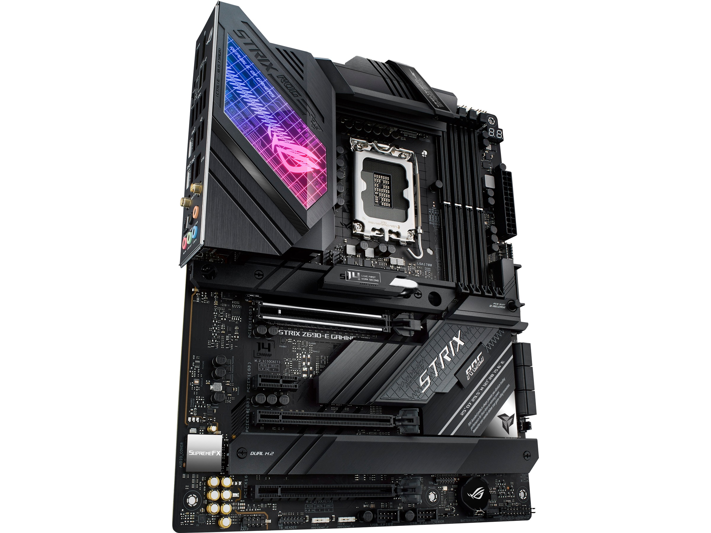 ROG Strix Z690-E Gaming WiFi puts 12th Gen Intel® Core™ processors at center stage, with beefed-up power delivery, cooling, cutting-edge connectivity options, and a range of accoutrements that effortlessly propel builds to maximum performance. This series flagship is your ticket to next-level gaming.