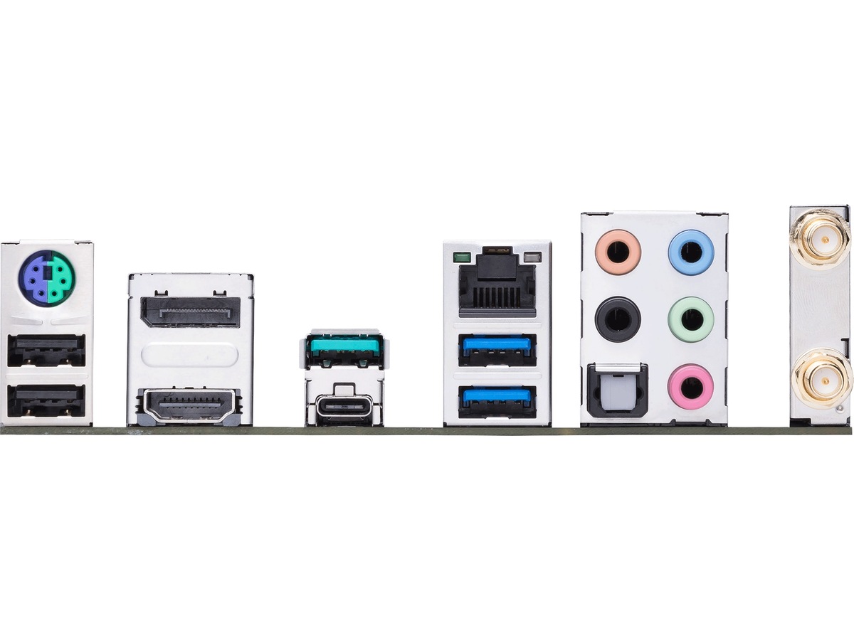 1 x ljudutgång (center/subwoofer) - mini-jack, 1 x USB-C Gen2x2, 1 x LAN (2.5Gigabit Ethernet), 1 x USB 3.2 Gen 2, 1 x ljudutgång (bakre) - mini-jack, 1 x mikrofon - mini-jack, 2 x USB 2.0, 1 x HDMI, 1 x PS/2-tangentbord/mus, 1 x DisplayPort, 1 x TOSLINK, 1 x ljudutgång - mini-jack, 2 x USB 3.2 Gen 1, 1 x ljudingång - mini-jack