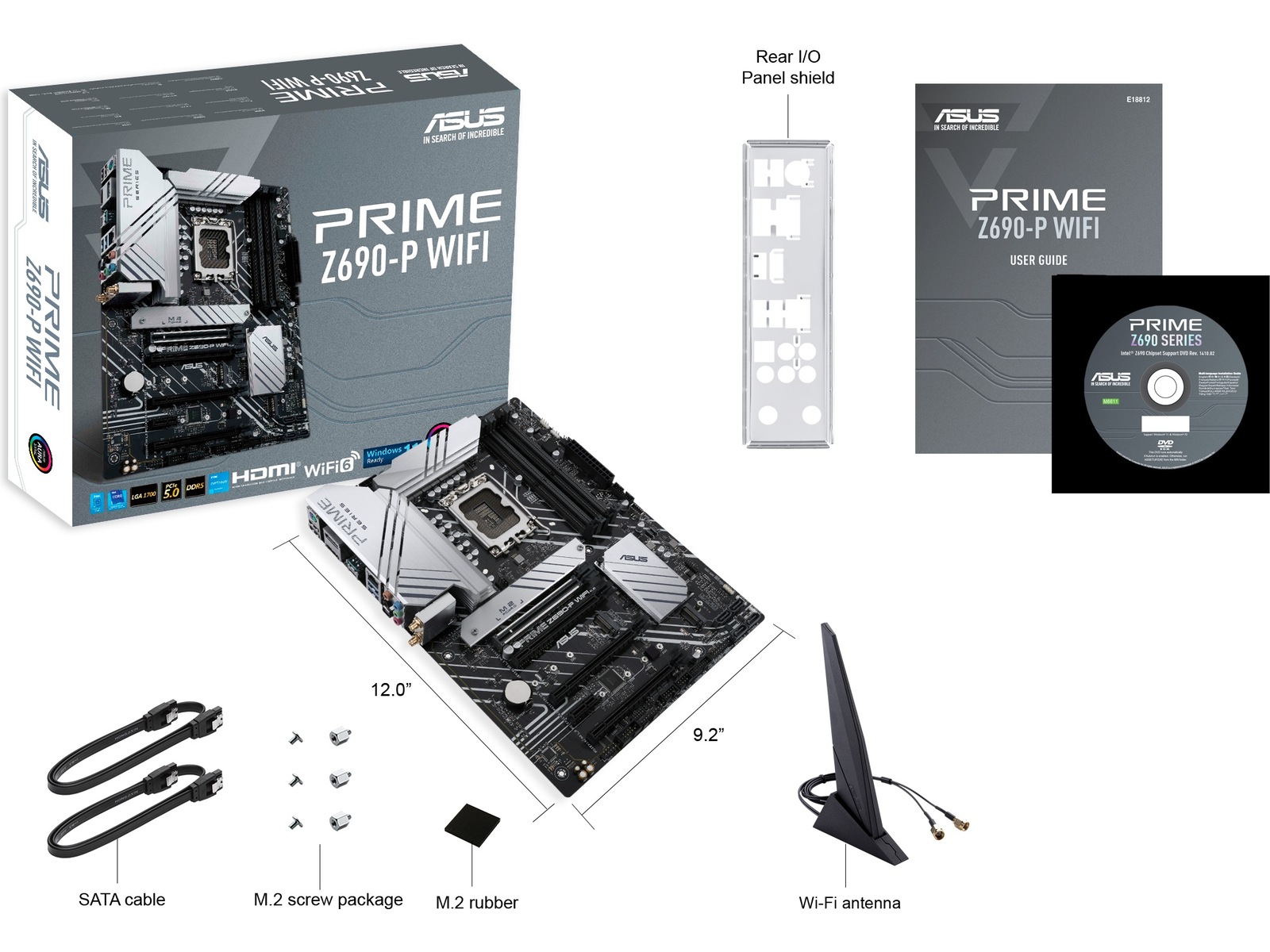 PRIME SERIES ASUS Prime series motherboards are expertly engineered to unleash the full potential of 12th Generation Intel® processors. Boasting a robust power design, comprehensive cooling solutions and intelligent tuning options, Prime Z690-P WIFI provides users and PC DIY builders a range of performance tuning options via intuitive software and firmware features. ASUS Prime Z690-P WIFI offers a sleek, futuristic-looking build with a black and white finish, space-shuttle-inspired design elements, metallic nameplate and PCB cover.